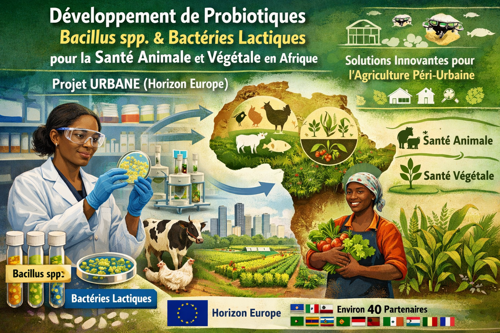 Mes activités de recherche portent entre autres, sur le développement de probiotiques à base de Bacillus spp. et de bactéries lactiques, pour des applications en santé animale et végétale à destination de plusieurs pays Africains. Cette recherche s’inscrit dans le cadre du projet européen URBANE (Horizon Europe), un programme d’envergure internationale regroupant environ 40 partenaires à travers le monde, visant à promouvoir des solutions innovantes pour l’agriculture péri-urbaine.